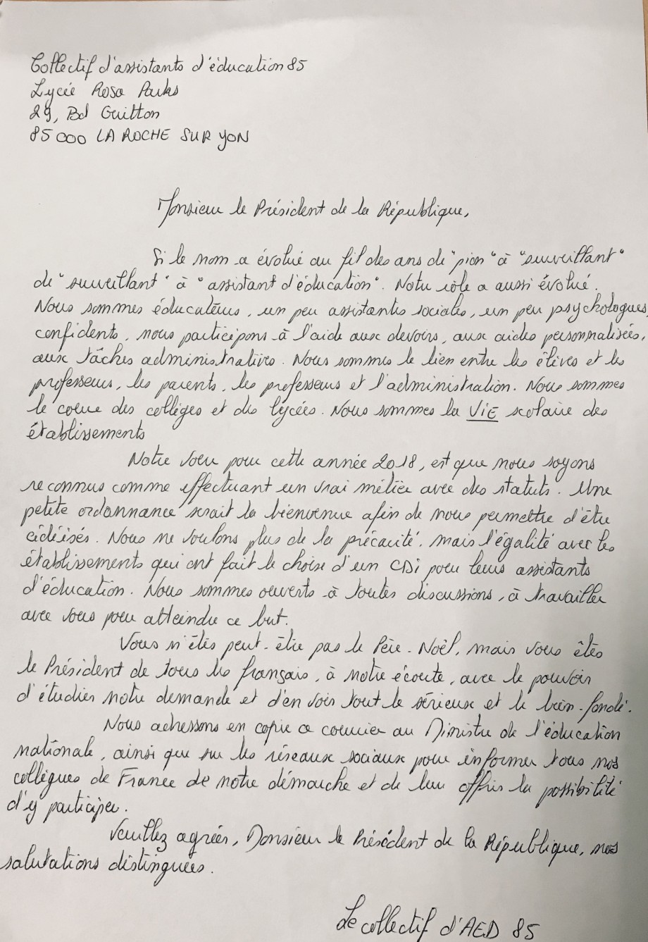 Lycée rosa parks Contacter l'auteur de la pétition