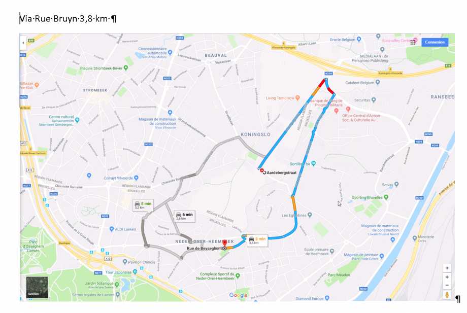 Ci-joint vous trouverez le nombre de km à parcourir pour aller de la Aardebergstraat (Koningslo) à la rue Beyseghem, et se rendre aux différentes écoles situées sur l’avenue de Versailles, Beyseghem, avenue Wannecouter etc… Les avantages de la réouverture de cette rue : Diminution des embouteilles sur la Indringingsweg, feu rouge de l’avenue de Tyras, sortie des autoroutes Diminution de la consommation d’essence/diesel Gain de temps pour de nombreuses famille...