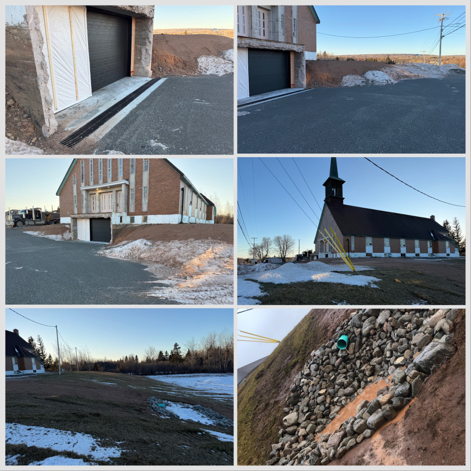 L’église ayant été vendu à une compagnie à numéro, appartement à une personne de la communauté, des travaux ont été effectués. L’ancienne escalier en béton, devant l’église, fut enlevée. Il y a eu escavation jusqu’au bas de la fondation et une grande porte de garage fut mise en place. Jusqu’à la, ça va.